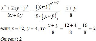 Упростите выражения х^2+2ху+у^2 / 8х+8у и найдите его значение при х=12 ;у=4