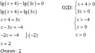 Решите уравнение:lg(x+4) - lg(3x)=0