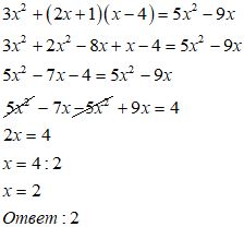 3x²+(2x+1)(x-4)=5x²-9x Решите уравнение
