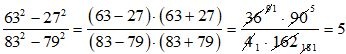 Вычислите значение выражения 63^2-27^2/83^2-79^2