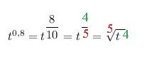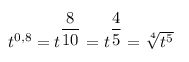 Представьте степень в виде корня t^0,8