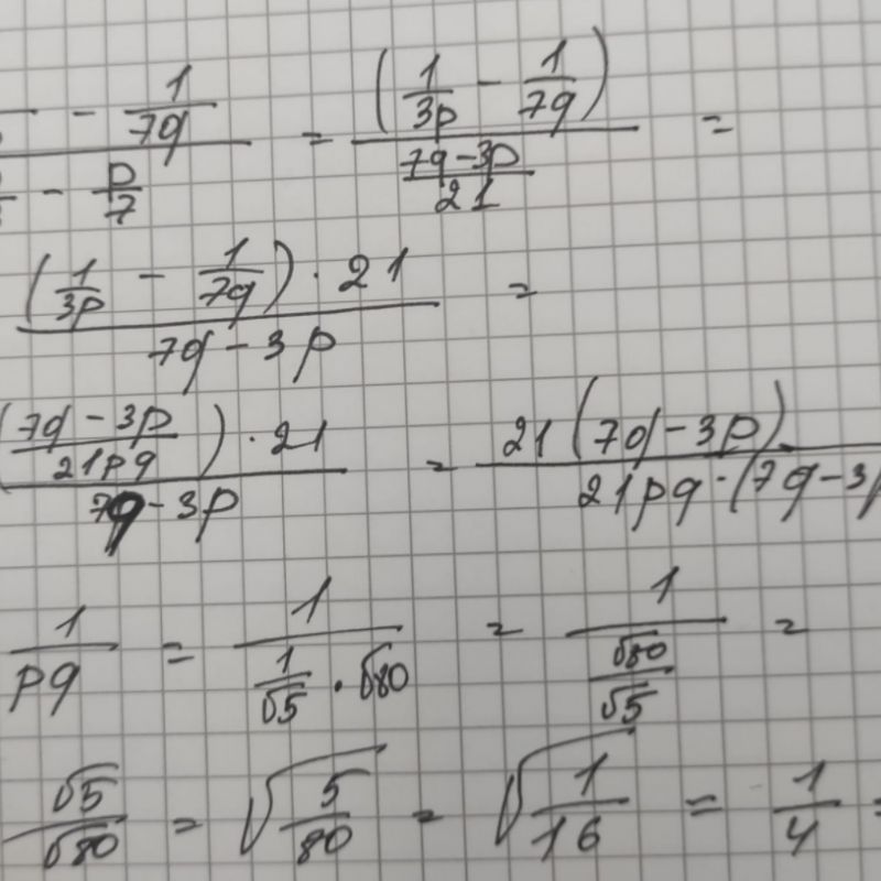Найдите значение выражения (1/3p-1/7q):(q/3-p/7) если p=1/√5 и q=√80