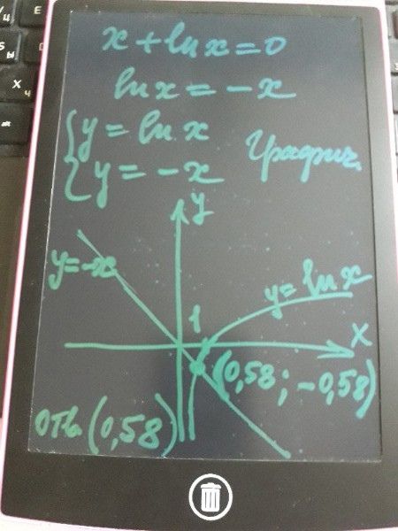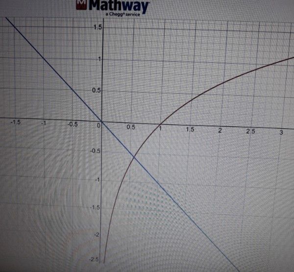 Абсцисса точки их пересечения будет корнем уравнения, она примерно равна 0,58