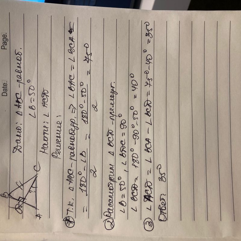 В равнобедренном треугольнике ABC с основанием АС проведена высота СD. Найти угол AСD если угол В = 50° В равнобедренном треугольнике ABC с основанием АС проведена высота СD. Найти угол AСD если угол В = 50°