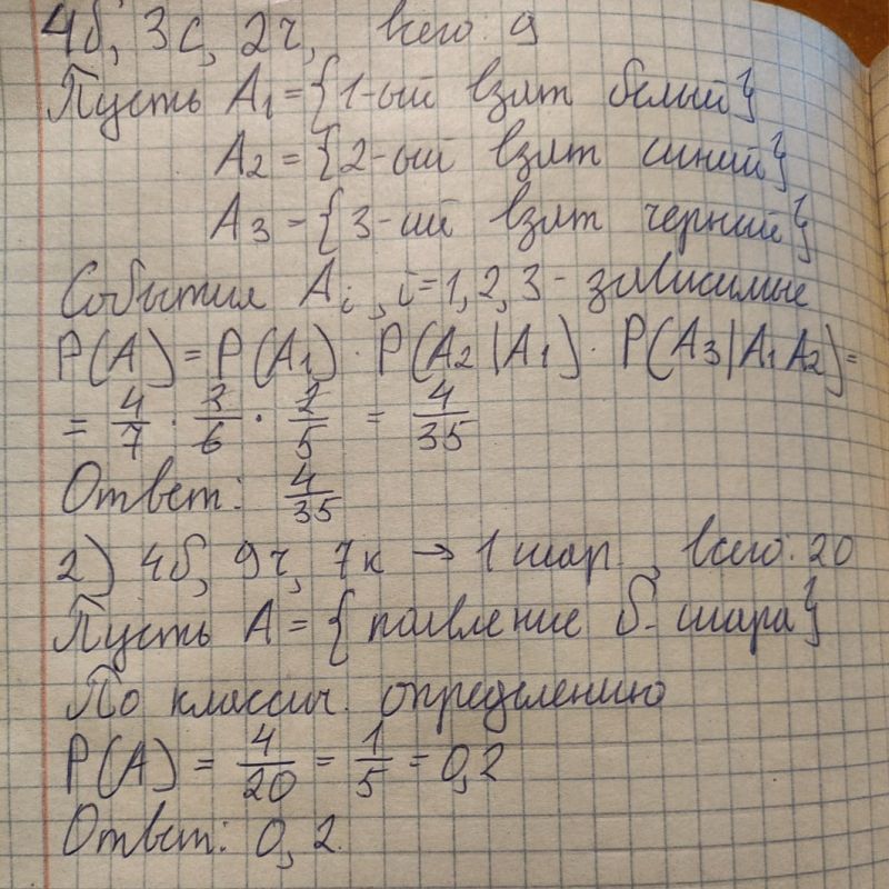 2) В ящике 4 белых, 9 черных и 7 красных одинаковых шарика.