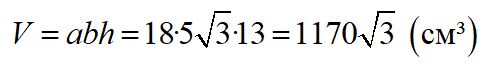 Обьем прямоугольного переллелепипеда найдите обьем прямоугольного параллелепипеда, стороны основания которого равны a и b, а высота равна h, если: a=18, b=5корень3, h=13