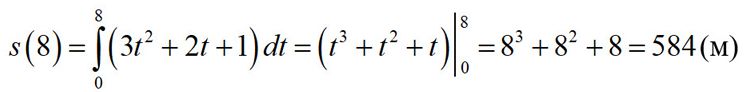 Найдите пройденный путь точкой за восемь секунд. Скорость движения изменяется по закону v = 3t ^ 2 + 2t + 1(м / с).