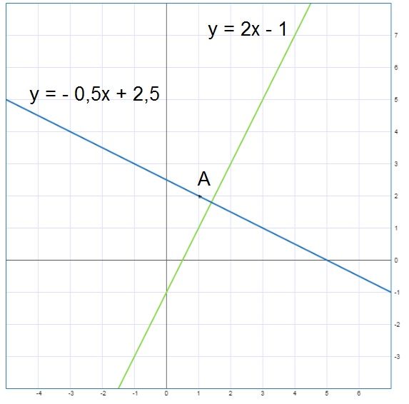 Ответ: y = - 0,5x + 2,5 уравнение перпендикулярной прямой.