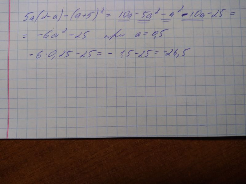 5а (2 - а)-(а+5)^2 упростите и найдите значение выражения при а=0.5