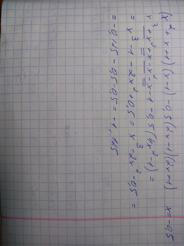Упростите выражение (х^2+х+1)*(х-1)-0,5(2х-1)*(2х+1) при х = -0,5