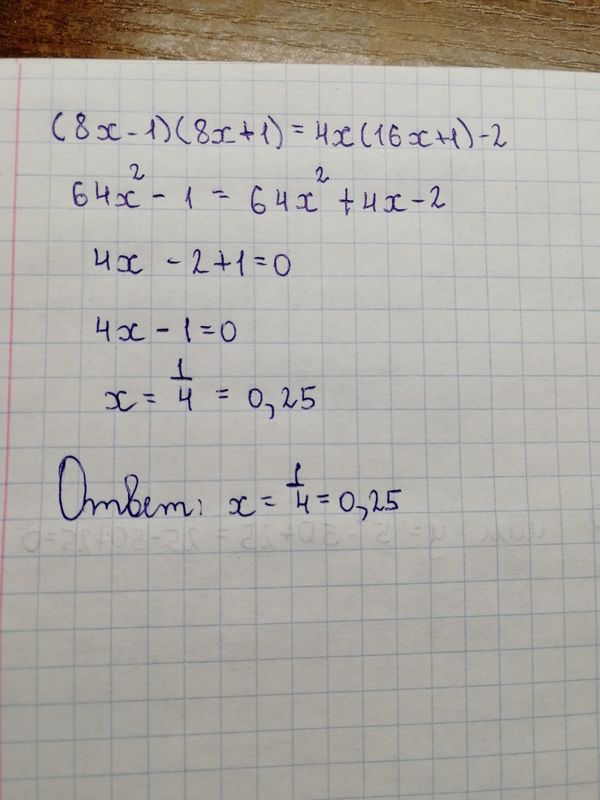 Найдите корень уравнения (8х-1)(8х+1)=4х(16х+1)-2