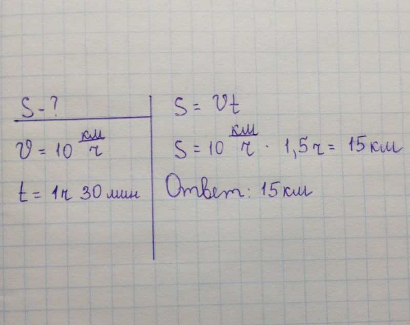 Скорость лыжника 10 километров в час. Какое расстояние он пройдет за час 30 минут?