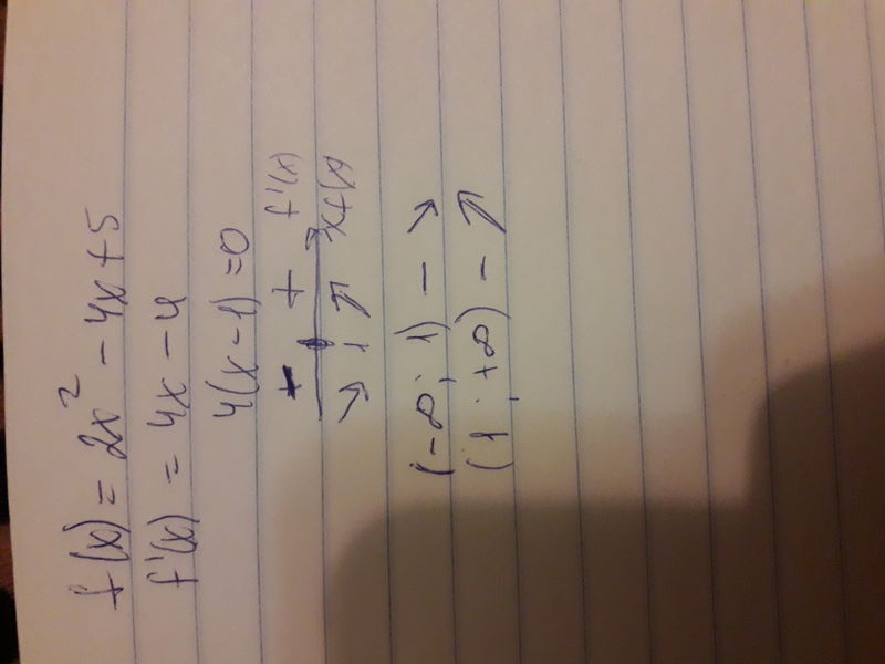 Найти промежутки возрастания и убывания : f(x)=2x^2-4x+5