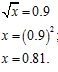Решите уравнение √x=0.9
