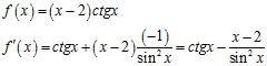 Кто подскажет решение Найдите производную функции f(x)=(x−2)ctgx