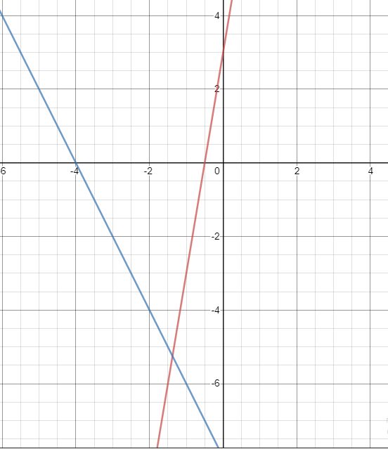 Координаты точки пересечения: (-1,375; -5,25) - третья четверть