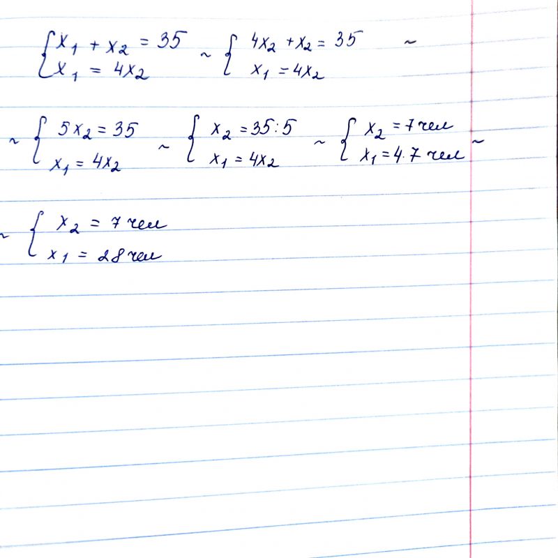 x-количество учеников во втором классе, тогда 4x-количество учеников в первом классе.