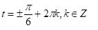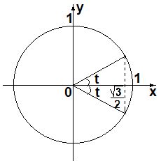 cos t= корень(3)/2 соответствует координате х точки, лежащей на единичной окружности. t=30 градусам или пи/6 рад и t=-30 градусам или -пи/6 рад. Но эти углы повторяются через 2*пи*к рад, где к принадлежит множеству целых чисел. Ответ: