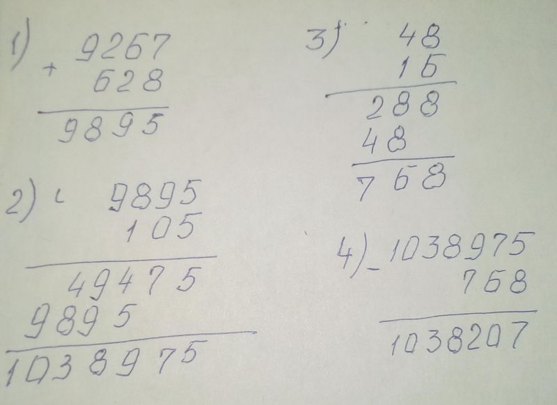Найди значение выражения (9267+628)*105-48*16 (по действиям)