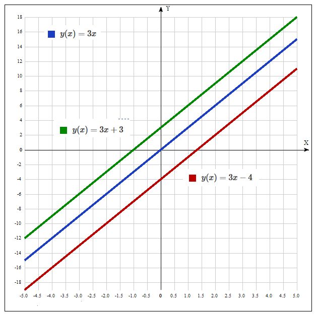 Построить график линейной функции у=3х, у=3х+3, у=3х-4