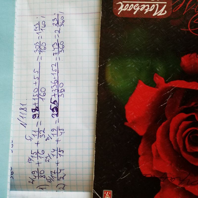 Вычислите: 1) 49/80+ 15/16 + 11/32; 2) 17/ 24 + 14/15 + 19/45