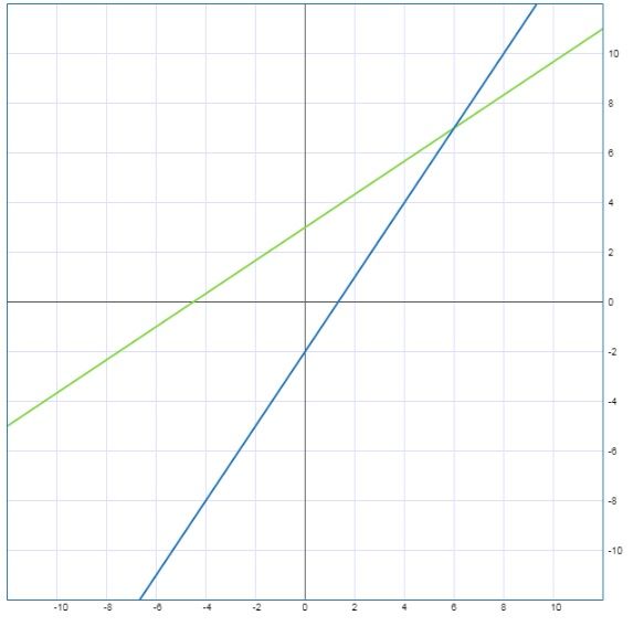 Ответ: (6; 7) - координаты точки пересечения графиков.