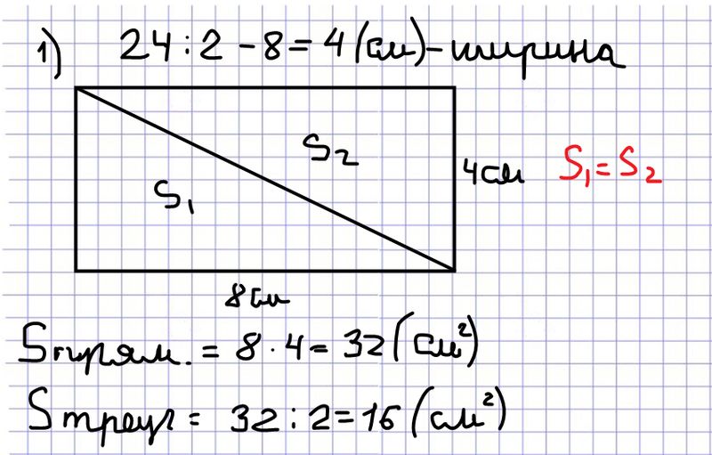 b = 24 : 2 - 8 = 12 - 8 = 4 см