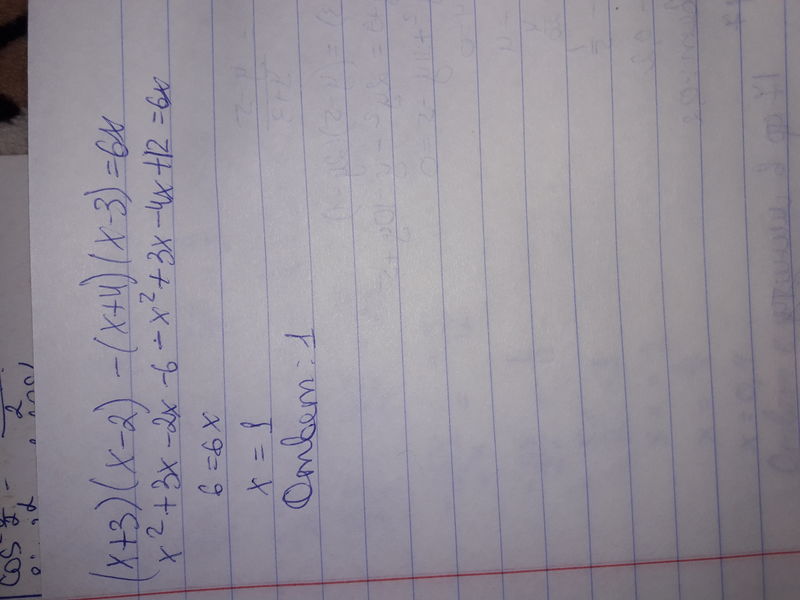 Решите уравнение: (Х+3)(х-2)-(х+4)(х-3)=6х