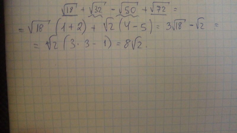 Вынесите множитель из под знака радикала и упростить выражение: √18+4√2-√50+3√8