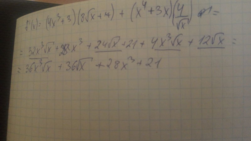Найдите производную f(x)=(x^4+3x)*(8√x+7)
