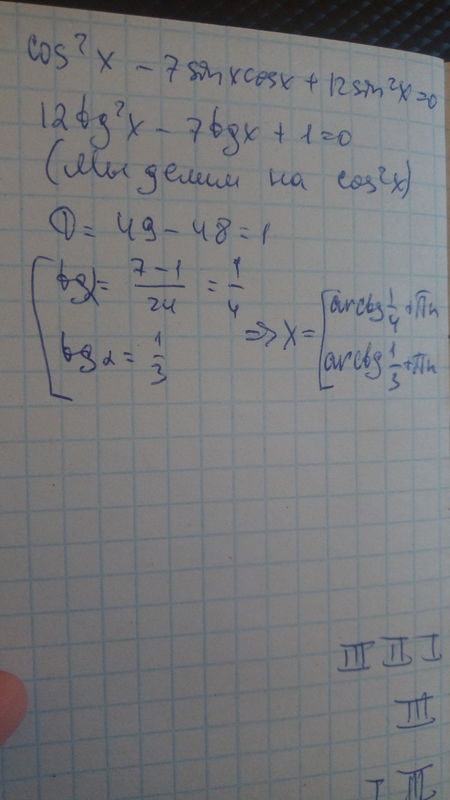 Cos^2x-7sinxcosx+12sin^2x=0