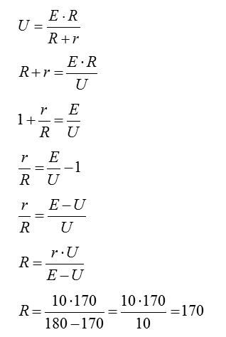 E*R-числитель R+r-знаменатель U= E*R/R+r Найти R, если U=170 E=180 r=10