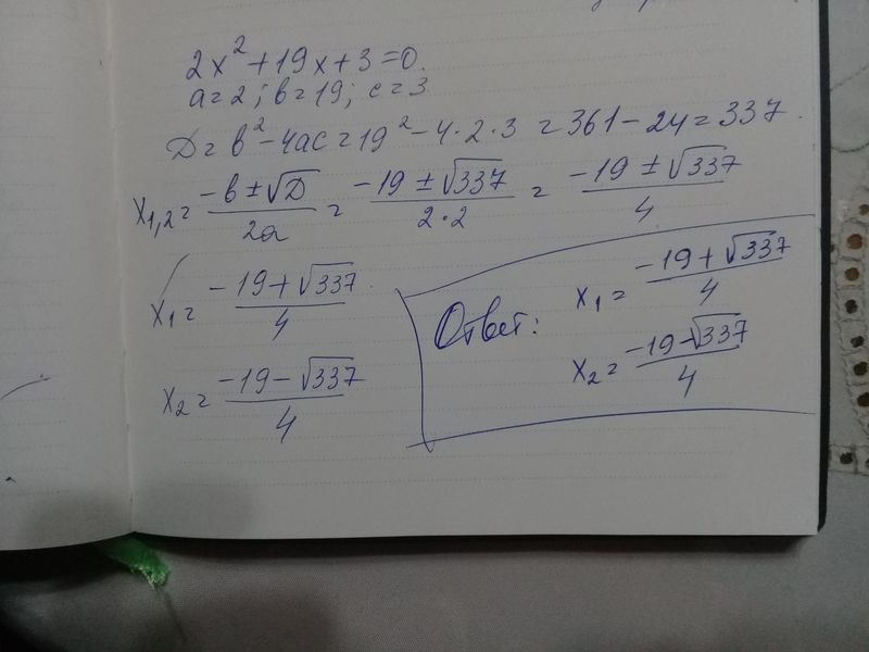 Определи число корней квадратного уравнения 2x2+19x+3=0