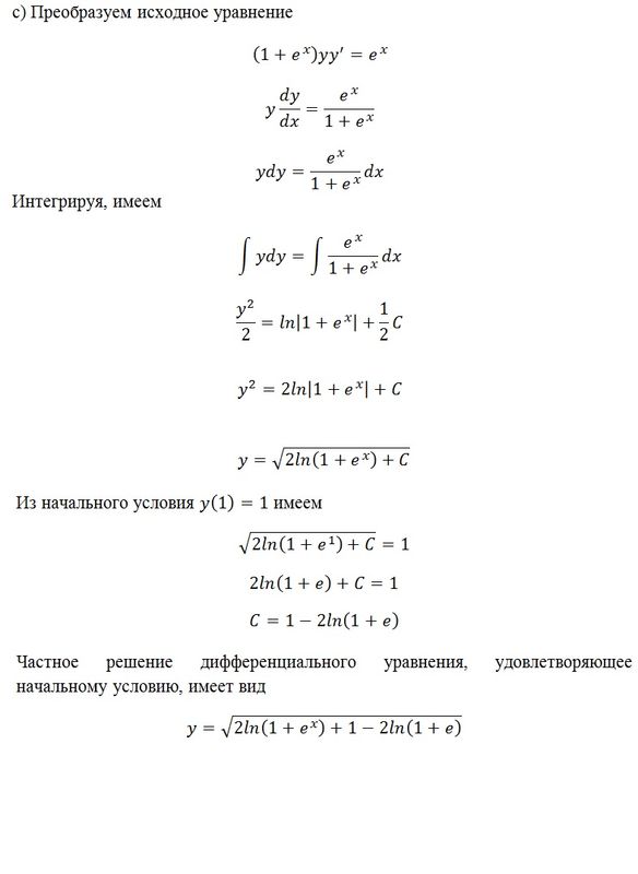 c) (1+e^x)yy' =e^x, y= 1 при x=1