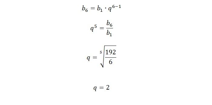 Как найти знаменатель геометрической прогрессии? Имеется геометрическая прогрессия, в которой В1 = 6, а В6 = 192. Как найти знаменатель?
