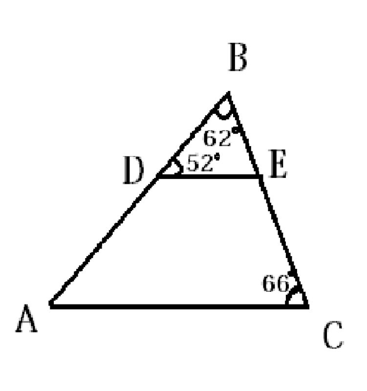тогда ∡ ACB = 180° - 62°- 52° = 66°