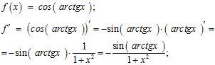 Найти производную f(x) = cos( arctgx ). Пошагово. Заранее спасибо!