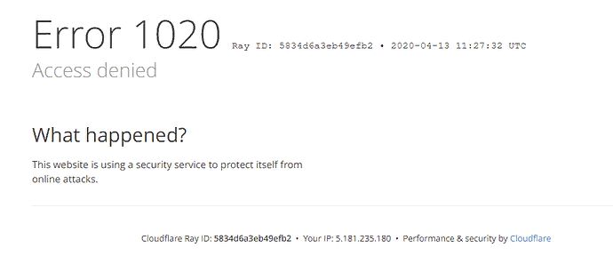 Данный тип сообщения появляется когда администратор сайта заблокировал доступ к сайту или странице на сервере Cloudflare. Т.е. все запросы блокируются и не доходят до сервера где расположен сайт.
